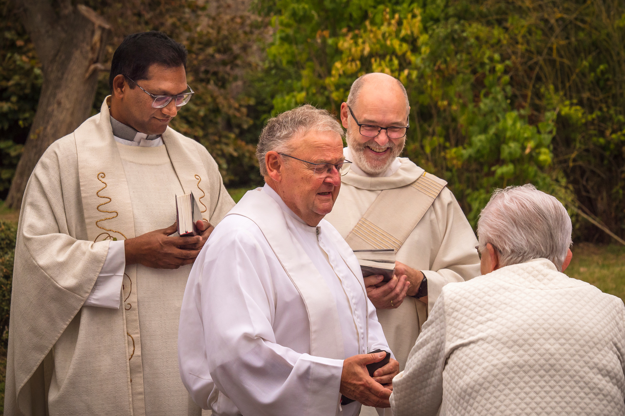 Die zahlreich erschienenen Gläubigen selbst brachten sich ein im Gebet und Gesang mit Orgelbegleitung. Grußworte und ausgewählte Blumen (Rosen/Gänseblümchen) überbrachte Herr Zimmermann von der evangelischen Kirche im Namen der evangelischen Pfarrerin Frau Greifenstein, die mit herzlichem Beifall bedacht wurden. Traditionell erfolgte auch die Kräuterweihe durch den Weihbischof.